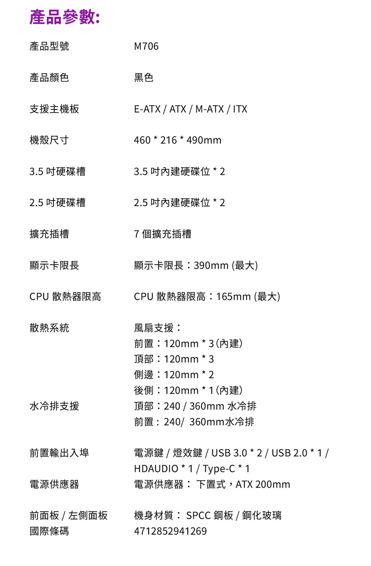 支援主機板: E-ATX / ATX / M-ATX / ITX