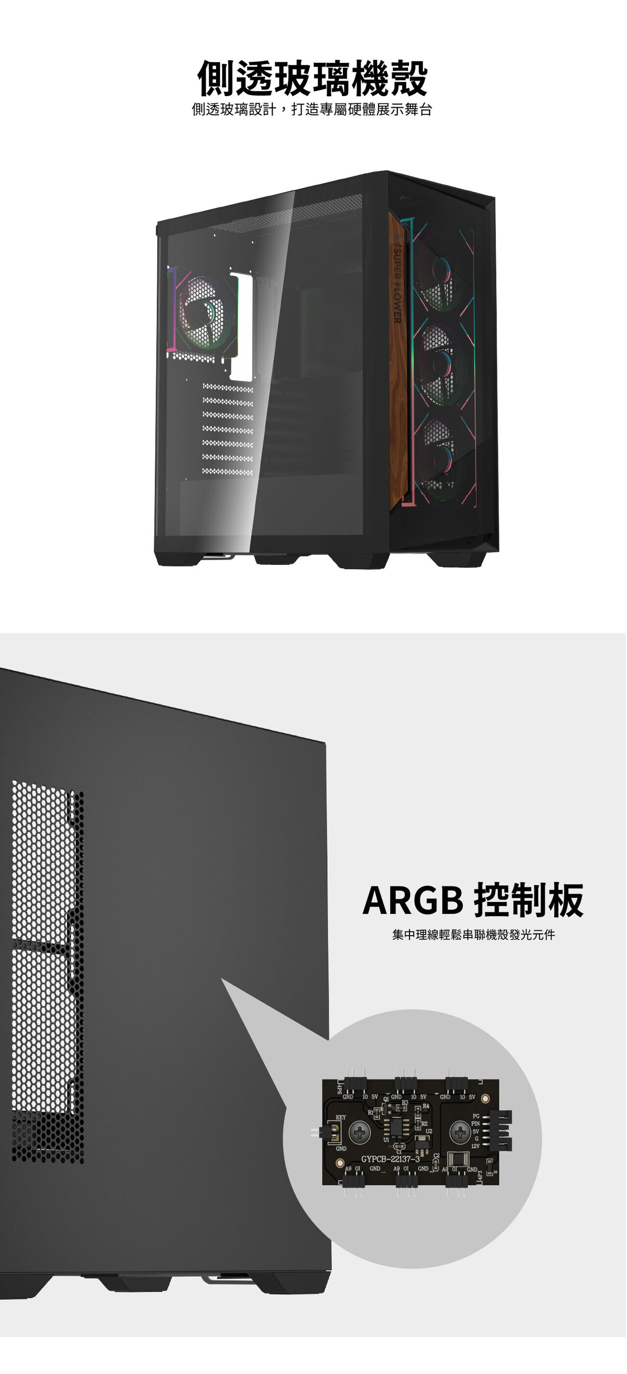 前面板 / 左側面板材質: SPCC 鋼板 / 鋼化玻璃