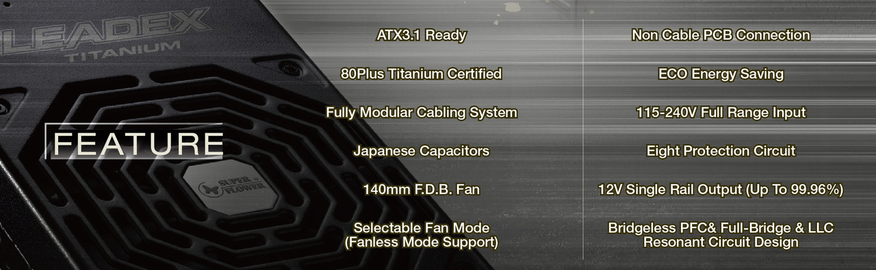 LEADEX series PSU provides high efficiency & stable power output and come with a 14cm two-way thermal control intelligent cooling fan to ensure your professional PC system will work under heavy load, also capable of powering your PC system equipped with NVIDIA® SLI™ or ATI CrossFireX™ setup.