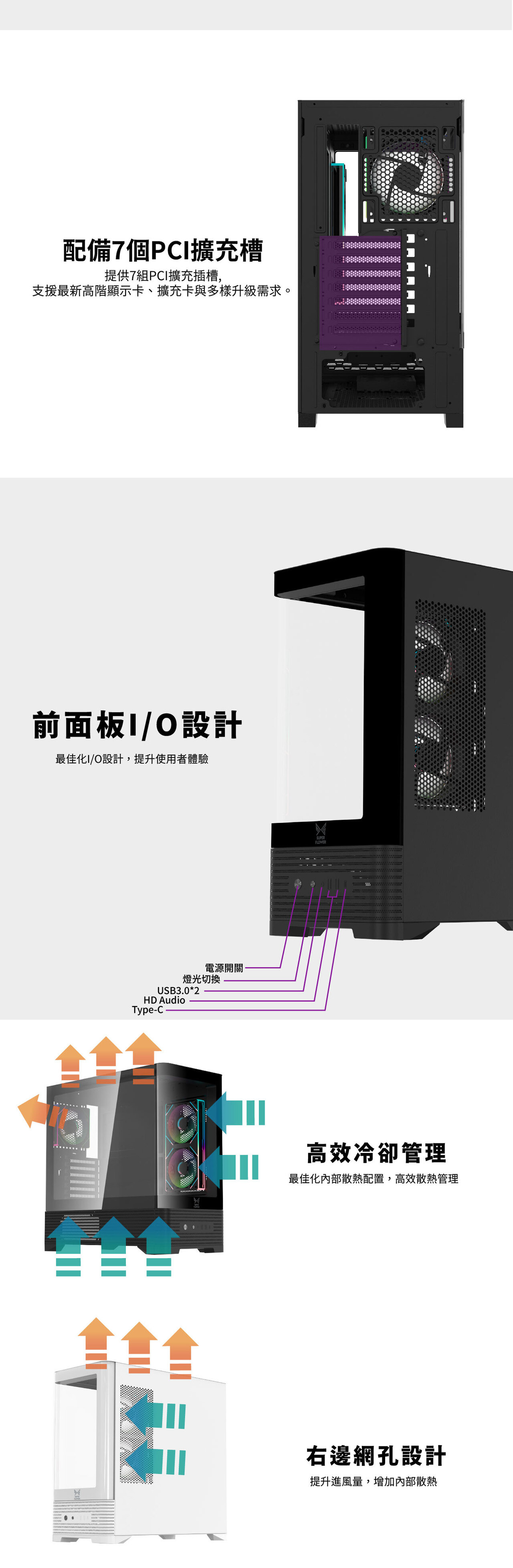 電源供應器:下置式,ATX 200mm 機身材質: SPCC 鋼板 / 鋼化玻璃